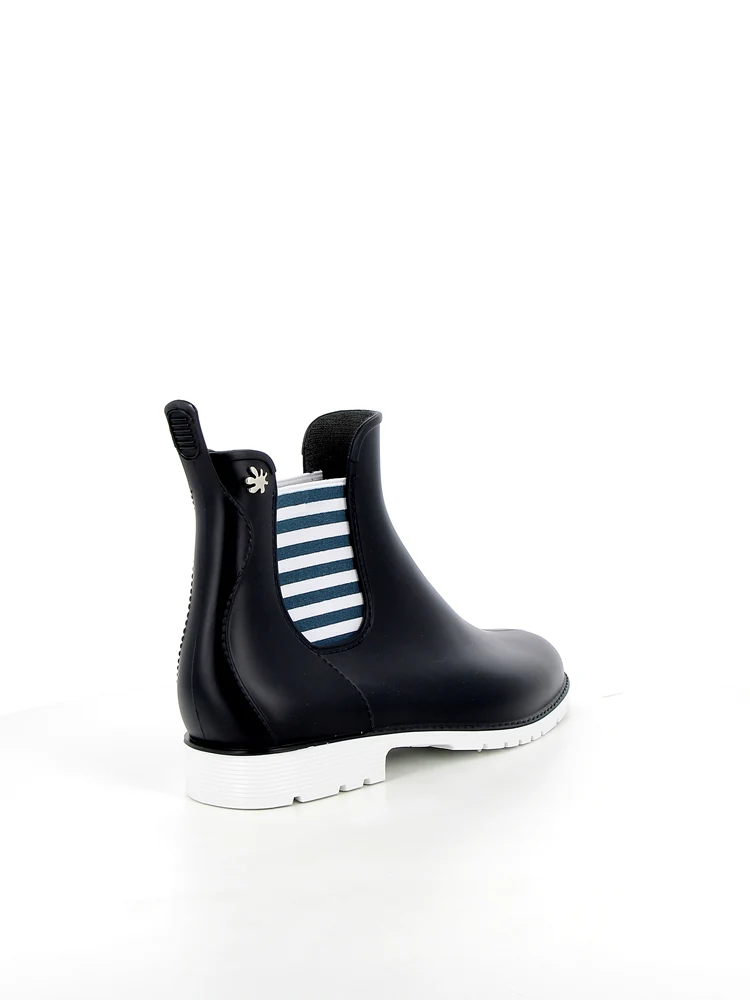 L'élastique au motif marinière apporte une touche classique et intemporelle à ces bottines de pluie pour femmes. Inspiré par les rayures iconiques des marinières, cet élément de design fait un clin d'œil au riche patrimoine nautique français.